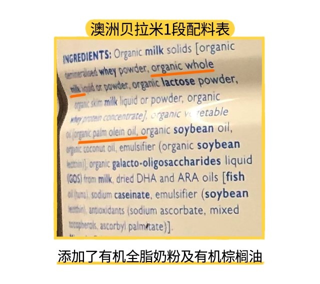 貝拉米全部段數都沒有添加比較好吸收的成分,而且含有有機棕櫚油,棕櫚油的棕櫚酸容易與鈣結合,形成鈣皂,影響寶寶對鈣的吸收。此外貝拉米奶基使用了有機全脂牛奶,牛奶脂肪球的直徑較大,對初生寶寶來說可能比較難消化吸收,大家要留意一下