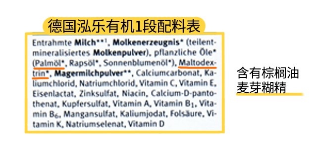 泓樂有機各段數也有棕櫚油,1段之后均添加了麥芽糊精,麥芽糊精是個很好吸收的碳水化合物。