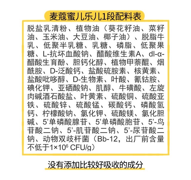 而蜜兒樂兒各段數都沒有添加比較好吸收的成分。