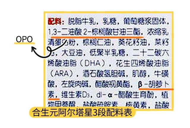 OPO可以優化寶寶對鈣和脂肪酸的吸收,還能軟化大便,降低便秘幾率。α-乳清蛋白是母乳中的主導蛋白質,寶寶對其有著更好的吸收率,其富含的色氨酸有助于安穩寶寶的睡眠和情緒。β-胡蘿卜素能促進寶寶視力發育,不過在我們很多日常食物中都含有β-胡蘿卜素,寶寶很輕易就可以從輔食中獲取到,因此阿爾法星在2段之后額外添加的β-胡蘿卜素意義不大。