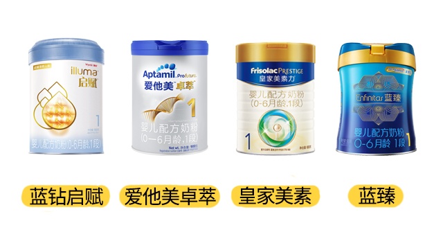 奶粉是寶寶十分重要的口糧,很多寶爸寶媽在選購奶粉時都抱著“便宜沒好貨”的觀念,因此,市面上涌現了很多高端奶粉,這篇,我挑選了惠氏、愛他美、美素和美贊臣這4個熱門品牌的高端奶粉進行對比,分別是惠氏藍鉆啟賦、愛他美卓萃、皇家美素、美贊臣藍臻,主要針對大家比較關注的吸收這個主題,下面看看在這4款高端奶粉中,到底哪款更利于寶寶的吸收。