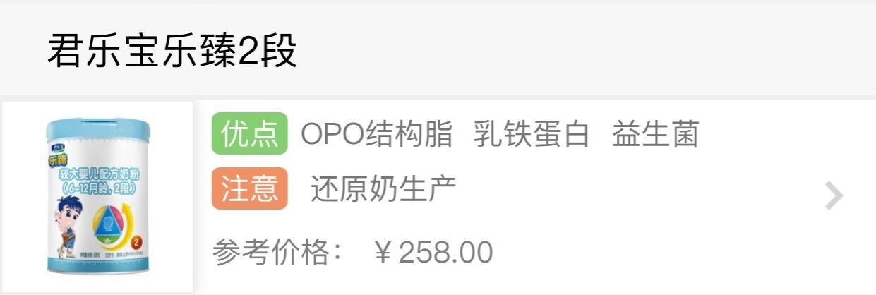 至臻2段摻入了大包粉兌水的還原奶來生產,還原奶采用的一般是干濕混合工藝,和鮮奶的濕法工藝對比,還原奶的新鮮度沒那么好,營養素的保留也沒有鮮奶那么完整。