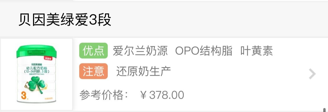 奶源這塊,綠愛3段采用愛爾蘭奶源,奶基是大包粉兌水而成的還原奶,還原奶的加工環節較多,奶粉不怎么新鮮,營養素的保留也不太理想。