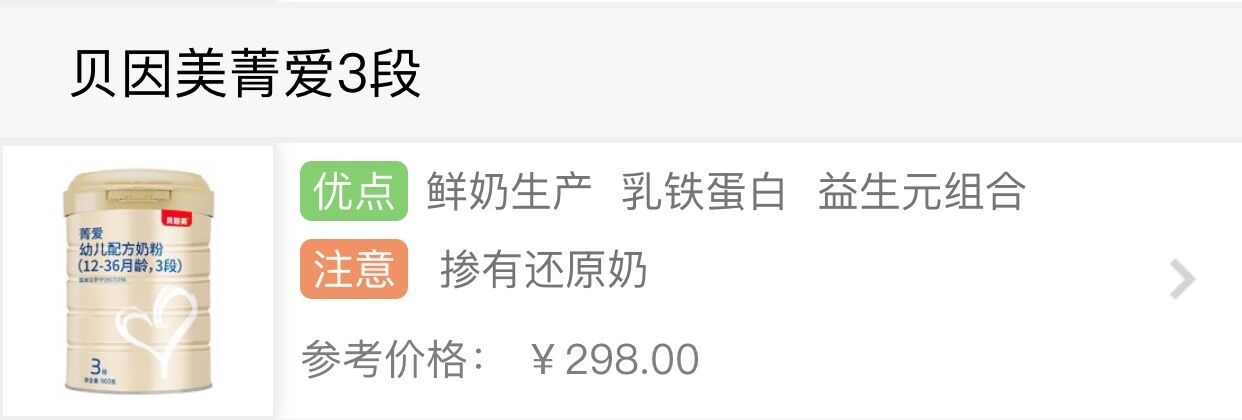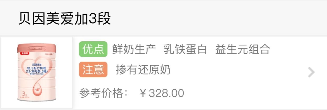 愛加3段的奶基中在鮮奶的基礎上,摻入了大包粉兌水而成的還原奶,相比起鮮奶,還原奶的加工工序較多,所以奶粉受到二次污染的幾率更高,流失的營養素也比鮮奶更多。