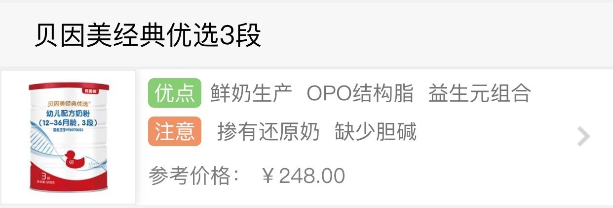 經典優選3段的奶基中除了有鮮奶之外,還摻入了大包粉兌水的還原奶,還原奶與鮮奶相比,加工工序更多,因此奶粉受到二次污染的幾率比鮮奶高,流失的營養素也更多些。