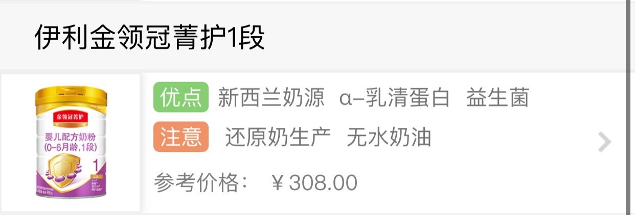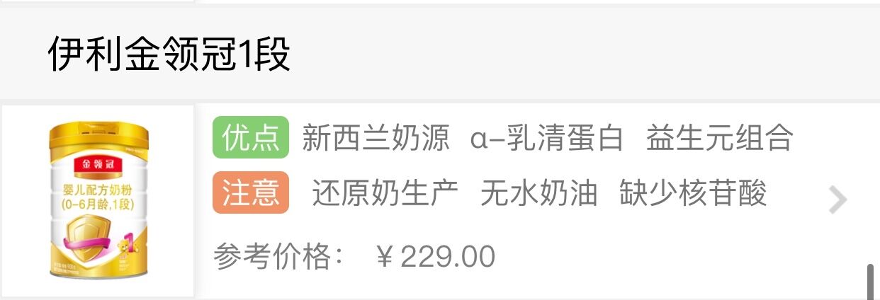 奶源方面,金領冠采用新西蘭奶源,奶基是大包粉兌水而成的還原奶,還原奶比鮮奶多一重加工工序,所以奶粉受到二次污染的幾率更高,流失的營養素也更加多。此外,大家還要注意,金領冠1段原料中添加的無水奶油,牛奶脂肪不怎么利于小月齡寶寶的消化吸收。