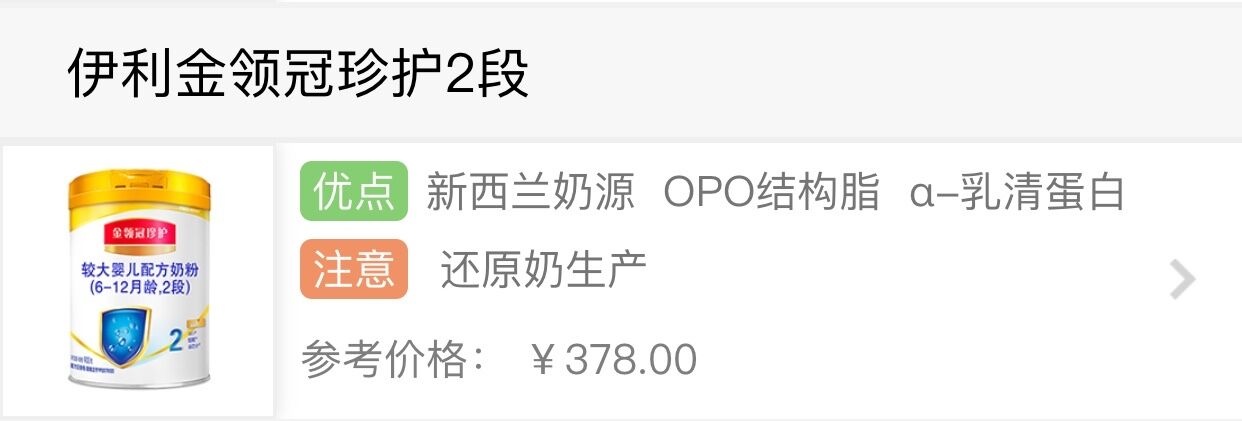 奶源這塊,珍護(hù)2段采用新西蘭奶源,奶基是大包粉兌水而成的還原奶,還原奶比鮮奶多一重工序,因此增加了奶粉受到二次污染的幾率,流失的營養(yǎng)素也更多些。
