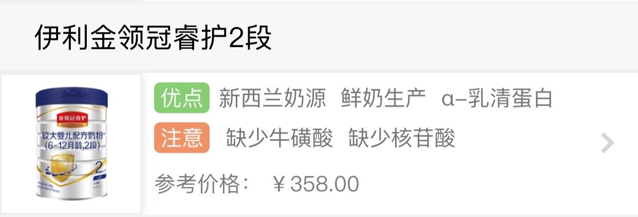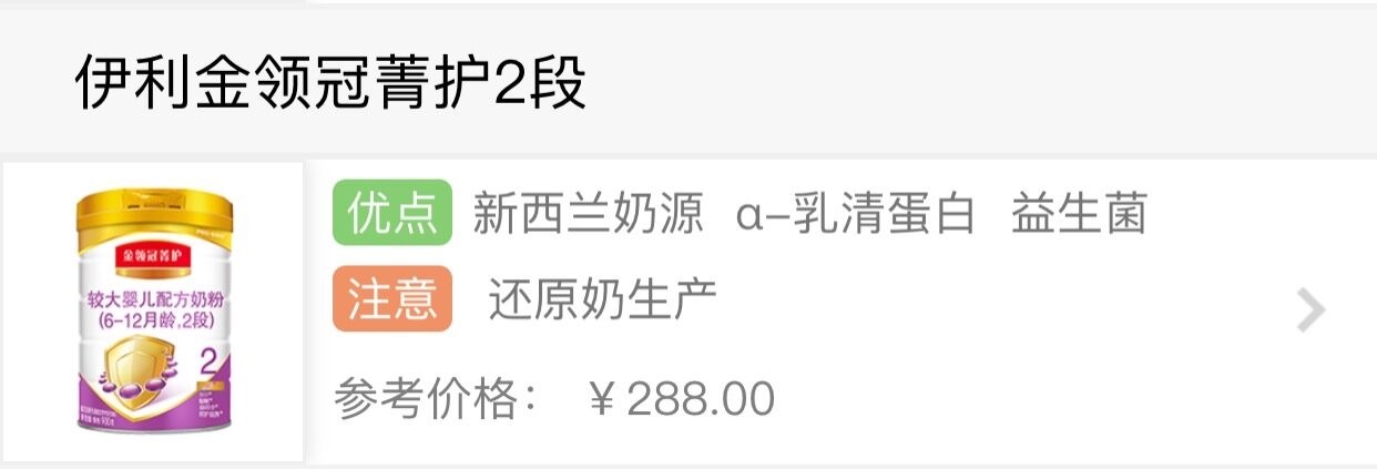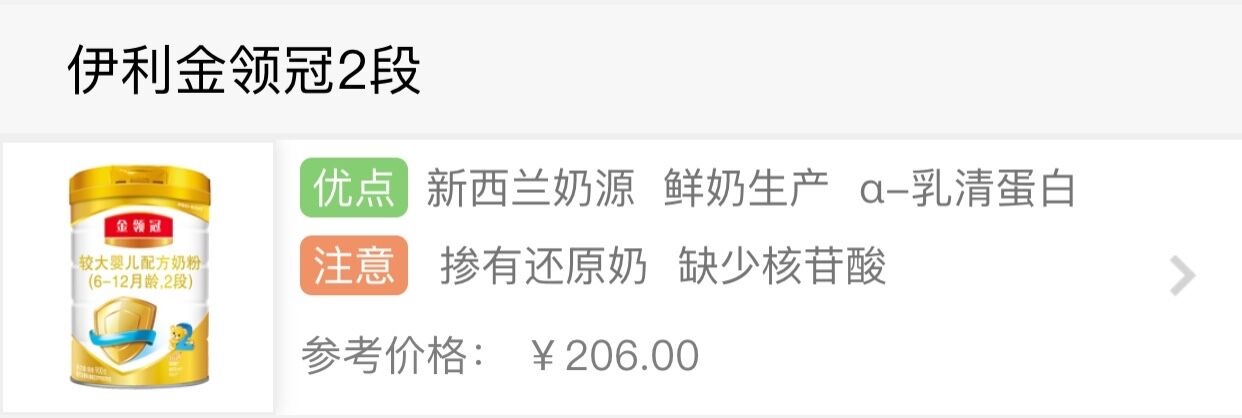 奶源方面,金領(lǐng)冠2段采用新西蘭奶源,奶基在鮮奶的基礎(chǔ)上,摻入了大包粉兌水而成的還原奶,還原奶的加工比鮮奶繁瑣復(fù)雜,因此奶粉更容易受到二次污染,并且流失的營養(yǎng)素也比鮮奶多一些。