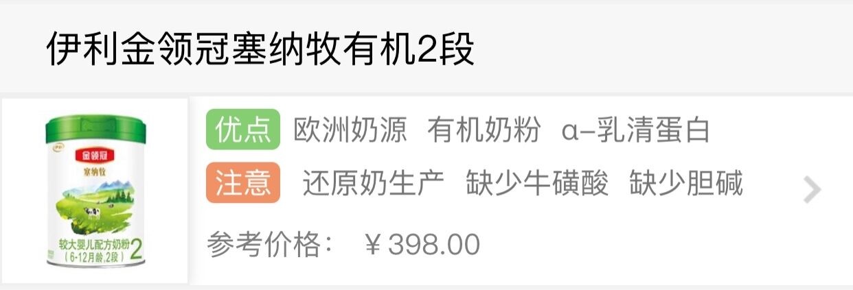 塞納牧有機(jī)2段采用歐洲有機(jī)奶源,有機(jī)奶粉對其生產(chǎn)環(huán)境及原料的要求更加苛刻,因此安全方面比普通奶粉更有保障,可惜塞納牧有機(jī)2段的奶基是大包粉兌水的還原奶,和鮮奶比較,還原奶的加工環(huán)節(jié)更多,因此奶粉的營養(yǎng)保留度以及新鮮度都大打折扣。