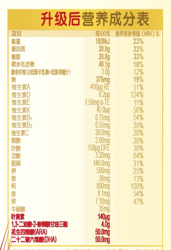珍護各段數段數的基礎營養含量均符合中國國標的規定,(3歲上奶粉沒有針對的兒童奶粉國標),基礎營養包括維生素、礦物質、碳水化合物、蛋白質、脂肪。至于6個常規強化配方中,DHA是大家比較關注的一項,經過換算,珍護4個段數DHA添加量分別是2.60mg/100kj、1.03mg/100kj、0.03mg/100kj、2.62mg/100kj,其中1段4段的DHA含量高于市面奶粉的平均水平,2段和3段則低于平均水平。