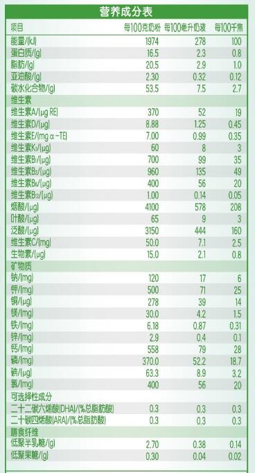 伊利奶粉配方表超全匯總 輕松讀懂配方表