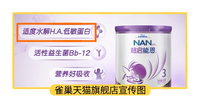 除了水解蛋白外,益生菌(動物雙歧桿菌)配方是超啟能恩奶粉的另一個主要賣點。