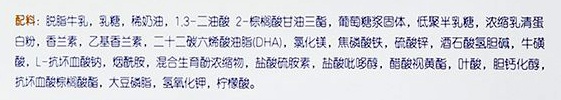 原料方面,派星添加的無水奶油要稍加注意,牛奶脂肪不怎么利于小月齡寶寶的消化吸收,還有派星3段和4段含有葡萄糖漿和香精。葡萄糖漿沒什么營養(yǎng)價值,加在奶粉中會降低營養(yǎng)價值更高的乳糖的占比。香精會加重奶粉的口味,寶寶喜歡喝,但長期食用容易使寶寶對口味產(chǎn)生依賴導致偏食。