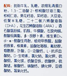 阿爾法星各段數(shù)的基礎營養(yǎng)含量都符合中國國標的規(guī)定,(3歲上奶粉沒有針對的兒童奶粉國標),基礎營養(yǎng)包括維生素、礦物質、碳水化合物、蛋白質、脂肪。至于在6個常規(guī)強化配方中,DHA是大家比較關注的一項,經(jīng)過換算,貝塔星4個段數(shù)DHA添加量分別是1.54mg/100kj、1.32mg/100kj、0.39mg/100kj、0.51mg/100kj,這些量均低于市面奶粉的平均水平。