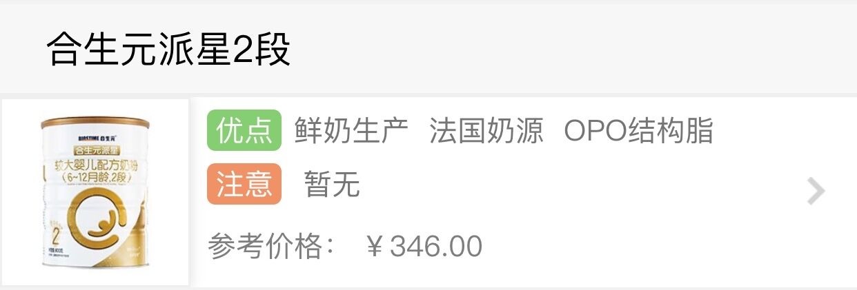 派星2段添加了6項常規強化配方,其中DHA的添加量為3.33mg/100kj,這個量比市面奶粉的中等水平多一些。此外,派星2段還有4個特色強化配方,分別是β-胡蘿卜素、a-乳清蛋白、天然乳脂、OPO,這些配方對于寶寶視力發育、吸收、便秘等方面起到積極意義。而由于很多日常食物中都含有β-胡蘿卜素,寶寶很輕易就能從輔食中獲取到,因此對于2段奶粉,我們不用太過關注這個配方。