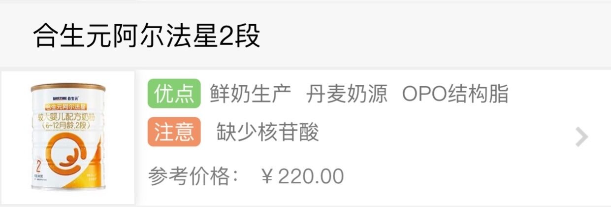 營養這塊,在6個常規強化配方中,阿爾法星2段只占5個,缺少了有助提高寶寶免疫力的核苷酸,對于這個情況,各位要注意輔食方面的調整。而其中,阿爾法星2段的DHA含量只有1.32mg/100kj,低于市面奶粉的平均添加水平。至于特色強化配方,阿爾法星2段有3個,包括OPO、α-乳清蛋白、β-胡蘿卜素,它們對于寶寶便秘、吸收、視力發育各方面都起到一定促進作用。不過β-胡蘿卜素的添加有點雞肋,因為在我們很多日常食物中都富含β-胡蘿卜素,寶寶很容易就能通過輔食中獲取到。
