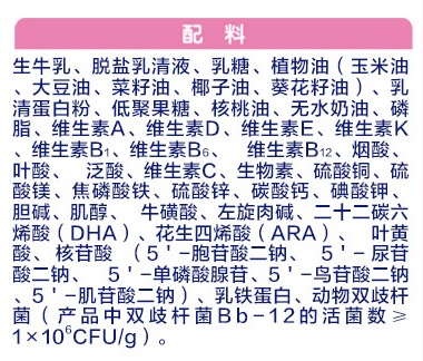 原料方面,星飛帆含有無水奶油,牛奶脂肪不怎么利于小月齡寶寶的消化吸收。