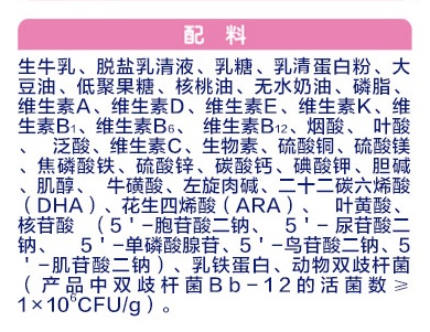 星階優護1段的奶基是鮮奶(生牛乳),2段之后摻入了大包粉(脫脂奶粉)兌水而成的還原奶來生產,還原奶的加工工序較多,奶粉的新鮮度和營養保留度都不怎么理想。