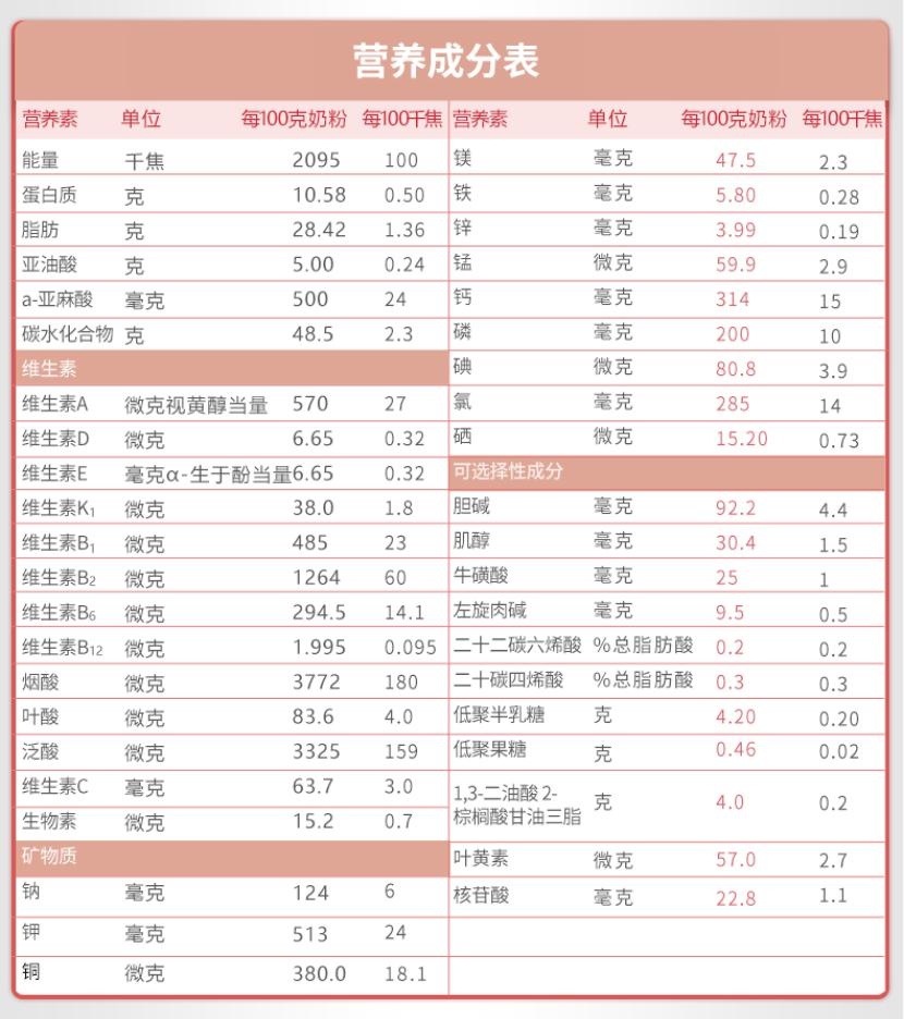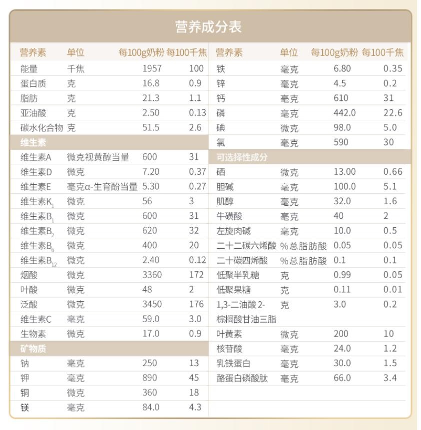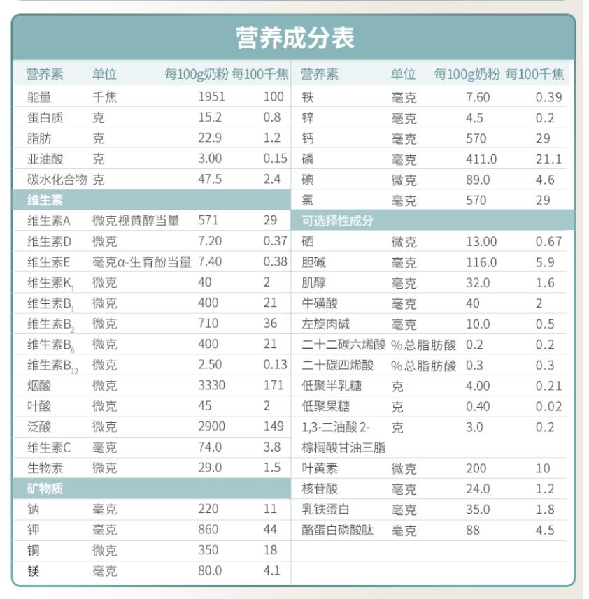 蜜兒樂兒各段數的基礎營養添加量都符合中國國標的規定,基礎營養包括維生素、礦物質、碳水化合物、蛋白質、脂肪。添加量方面,DHA是6個常規強化配方中大家比較關注的一項,但前面也提到,蜜兒樂兒并沒有添加DHA,這種個情況在市面上的普通嬰幼兒配方奶粉中十分少見。