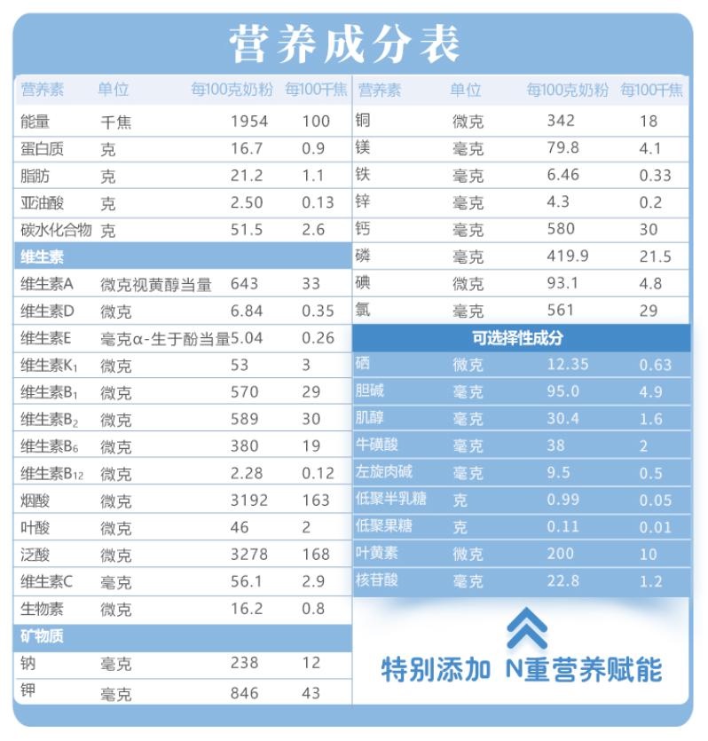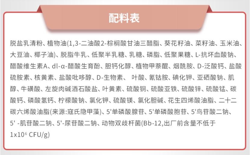 營養這塊,樂冠1-3段是6項常規強化配方齊全,此外,樂冠各段數還加入了4個特色強化配方,分別是益生菌(動物雙歧桿菌)、益生元組合(低聚半乳糖+低聚果糖)、葉黃素、OPO(1,3-二油酸-2-棕櫚酸甘油三酯),這些營養素在寶寶腸道、視力發育、便秘等方面有促進意義。