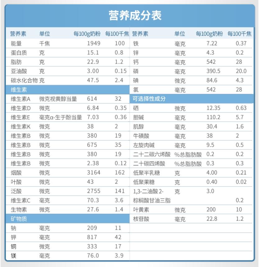 樂冠各段數的基礎營養含量都符合中國國標的規定,基礎營養包括維生素、礦物質、碳水化合物、蛋白質、脂肪。至于6個常規強化配方中,DHA是大家比較關注的一項,經過換算,樂享3個段數DHA添加量分別是2.71mg/100kj、2.35mg/100kj、0.54mg/100kj、,其中1段和2段的DHA含量比市面奶粉的平均水平稍高一些,3段則低于平均水平。