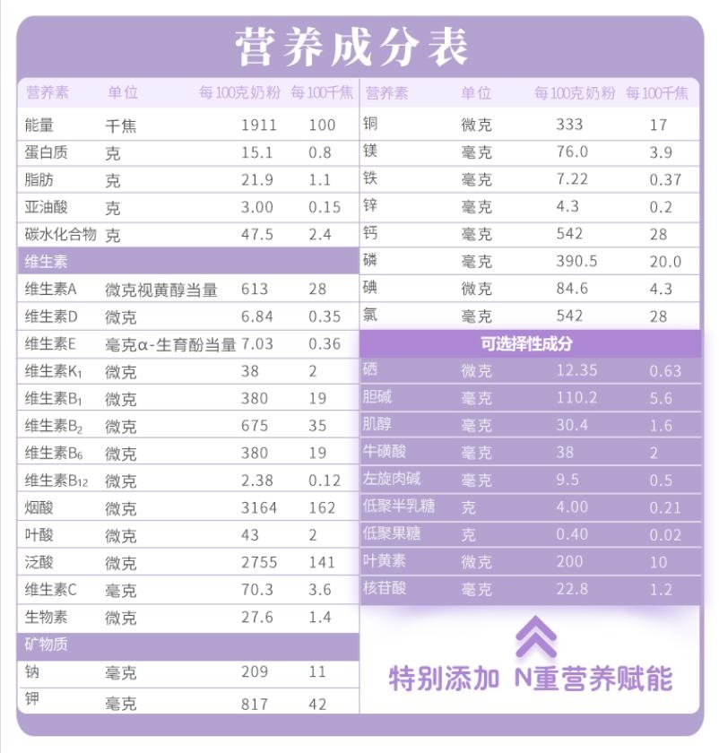 樂享各段數的基礎營養含量均符合中國國標的規定,基礎營養指的是奶粉中添加的維生素、礦物質、碳水化合物、蛋白質、脂肪。至于在剛提到的6個常規強化配方中,DHA是大家比較關注的一項,經過換算,樂享3個段數DHA添加量分別是2.71mg/100kj、2.35mg/100kj、0.54mg/100kj,其中1段和2段的DHA含量高于市面奶粉的平均水平,3段則沒有達到平均水平。