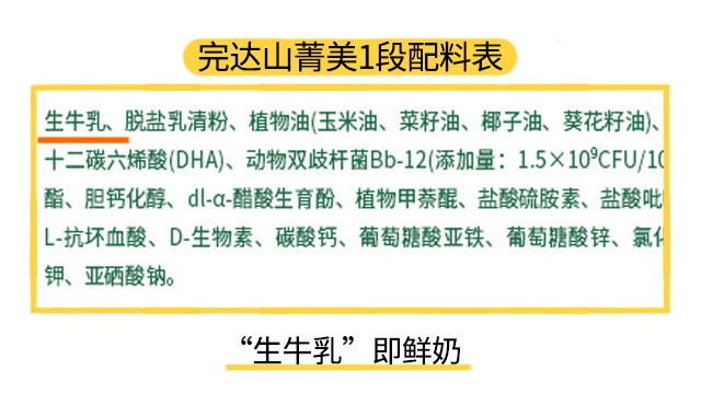 菁采也是采用中國奶源,不過它各段數的奶基中除了使用鮮奶之外,還摻有大包粉兌水而成的還原奶。還原奶比鮮奶多一重加工工序,首先要先把鮮奶干燥成大包粉,之后再運到別的工廠重新兌水成還原奶制成奶粉,大包粉本來就很可能經過一段較長時間的放置,還要經過運輸、兌水等工序,大大增加了奶粉受到二次污染的幾率,而且生產過程中流失的營養素也比鮮奶多一些。