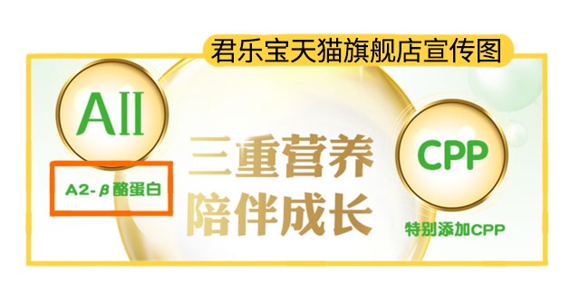 此外,有一個成分在配料表中沒有明確標注,不過君樂寶的官方天貓旗艦店上明確說了,至臻A2奶粉使用了A2-β酪蛋白,A2-β酪蛋白和母乳的酪蛋白類型是同一種,因此在親和度、吸收度方面比其他奶粉使用的A1型蛋白更有優勢。