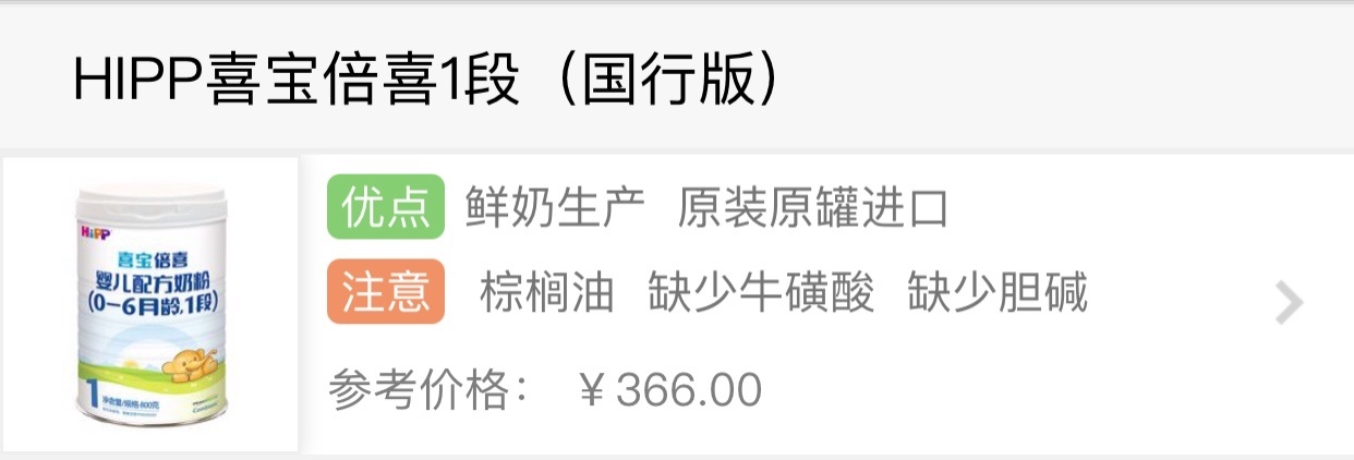 營養方面,市面上絕大多數普通嬰兒配方奶粉都會添加的6個常規強化配方,喜寶倍喜1段只有3個,缺少了牛磺酸、核苷酸、膽堿,如果寶寶食用1段,大家要注意輔食方面的搭配。另外,喜寶倍喜1段沒有添加任何特色強化配方,這點比較令人費解,因為喜寶倍喜是一款普通奶粉,營養配方的添加不像有機奶粉那樣受到限制,但它的營養配方比很多有機奶粉還要少。