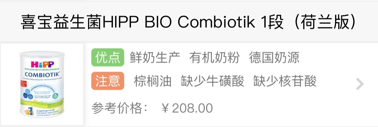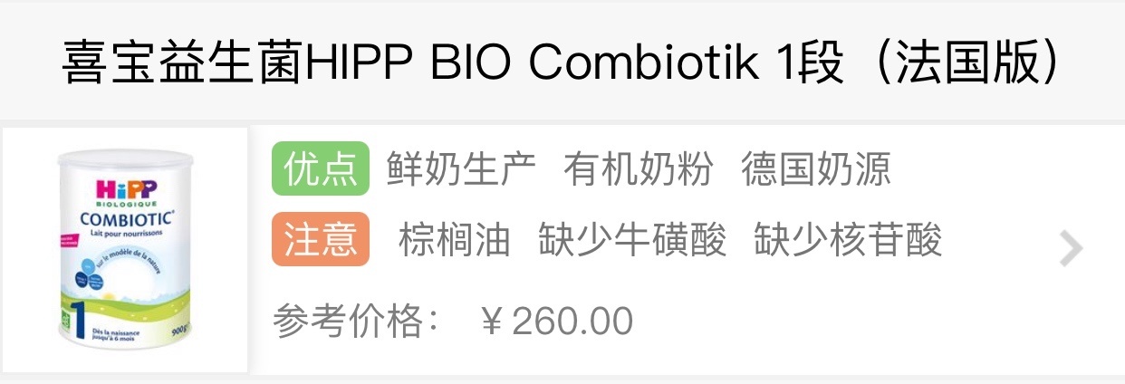 原料方面,法國版喜寶有機1段含有棕櫚油,棕櫚油有兩個壞處,一是會影響寶寶對鈣的吸收,一是會硬化大便而更難排出,從而增加了便秘的幾率。