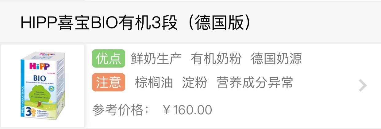原料方面,德國喜寶有機3段添加了棕櫚油和淀粉,棕櫚油會增加寶寶便秘的幾率,還會影響鈣吸收。淀粉可以增加寶寶的飽腹感,更耐餓,但淀粉沒什么營養價值,它的添加會是的營養價值更高的乳糖的添加量有所下降。