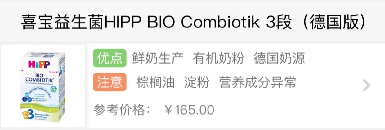 原料方面,喜寶倍喜3段含有棕櫚油和香精,棕櫚油不但會影響對鈣吸收及以及會增加便秘幾率。香精會增加奶粉的口味,寶寶喜歡吃,但長期下來容易使寶寶對口味產生依賴導致偏食。