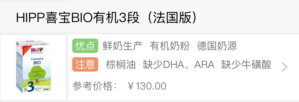 營養方面,法國版喜寶有機3段的表現比較差,常規強化配方和特色強化配方均沒有添加進去。