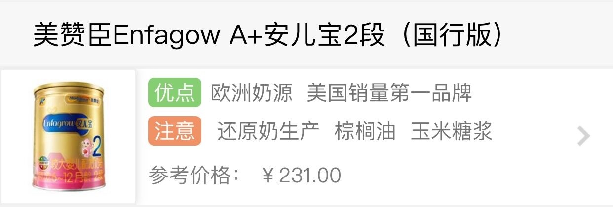 奶源方面,A+安兒寶2段采用歐洲奶源,奶基是大包粉兌水而成的還原奶,還原奶比鮮奶多一重工序,因此增加了奶粉受到二次污染的幾率,而且生產過程中流失的營養素都比鮮奶更多。