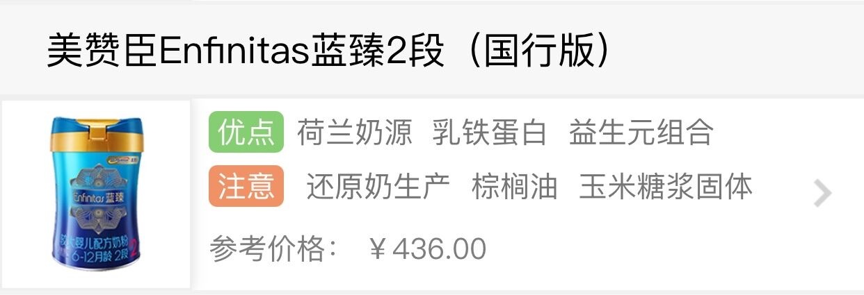 原料方面,藍臻2段含有玉米糖漿和棕櫚油。玉米糖漿添加在奶粉中一般用于取替部分乳糖的占比,達到降低成本的目的,但是玉米糖漿沒什么營養價值,不像乳糖那樣對寶寶器官、消化系統等方面的發育有促進作用。而棕櫚油的壞處在于它會使寶寶的大便硬化,從而增加便秘的幾率。