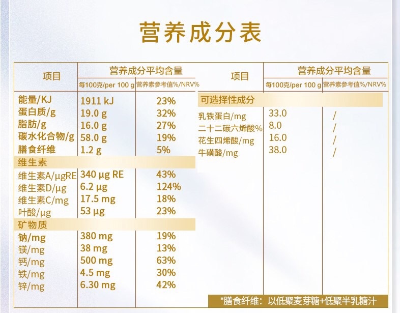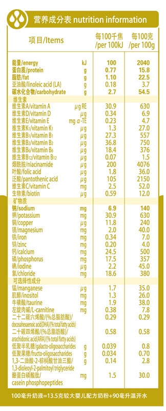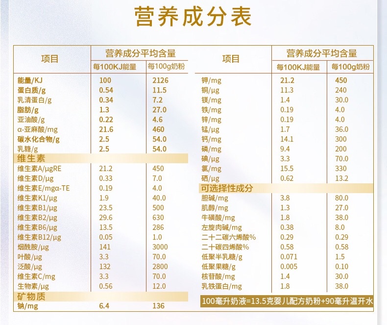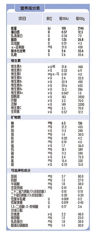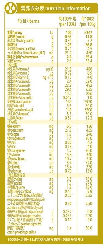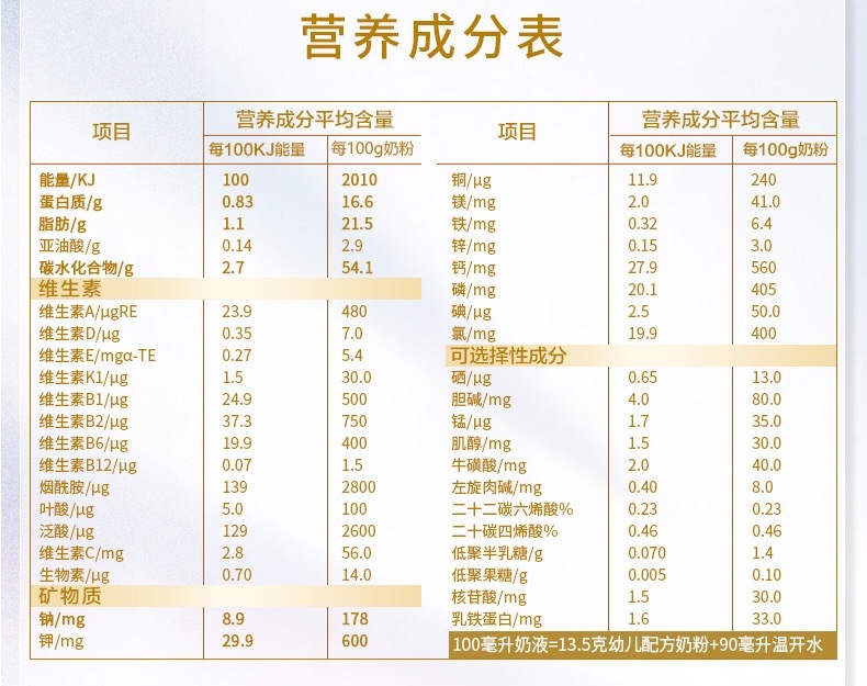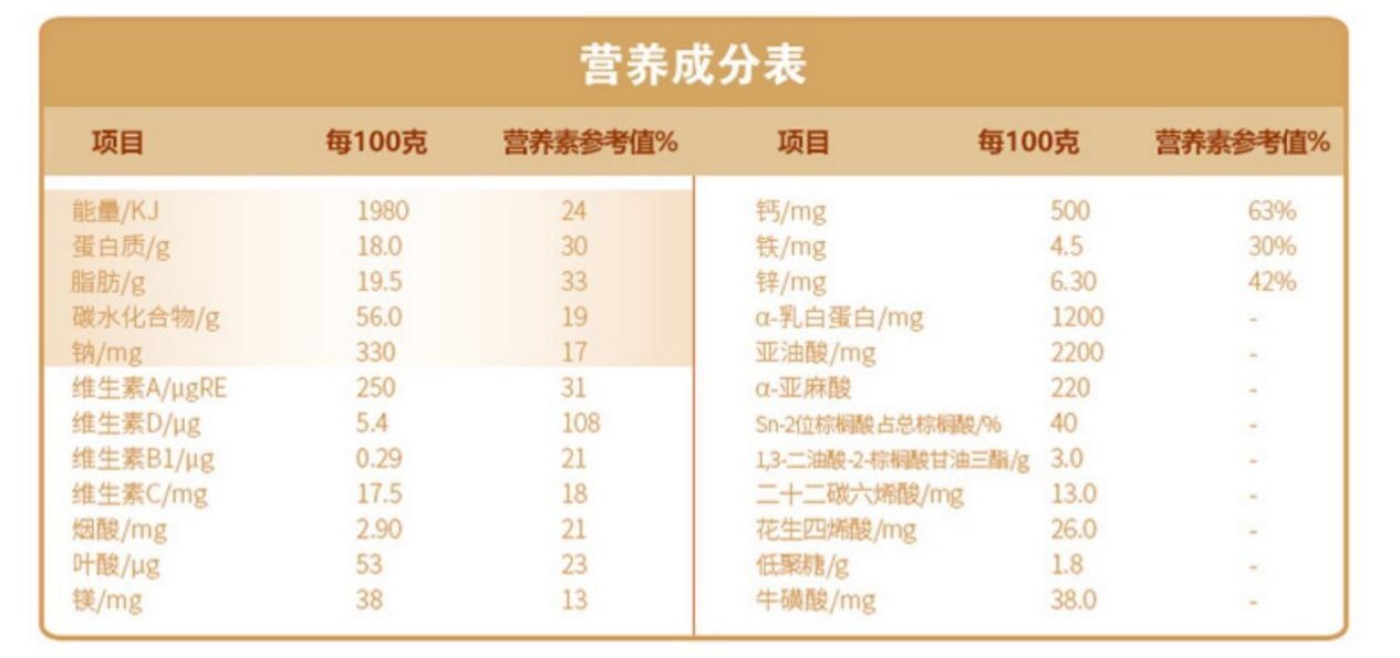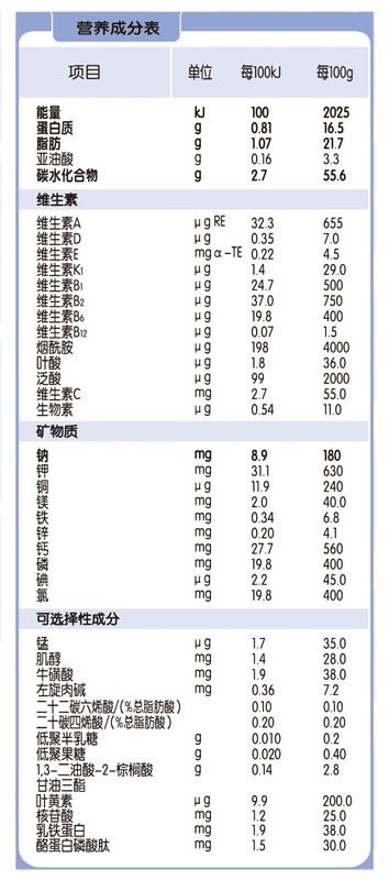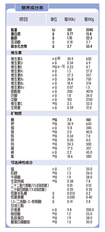 經(jīng)典優(yōu)選1-4段營養(yǎng)成分表
