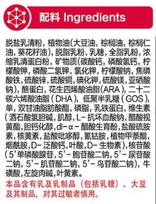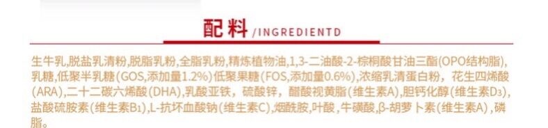紅愛3個段數(shù)都是使用大包粉(全脂乳粉、脫脂乳粉)兌水而成的還原奶來生產(chǎn),還原奶經(jīng)過二次加工,奶粉受到二次污染的幾率較高,且流失的營養(yǎng)也比較多。大家要注意一下,紅愛1段奶基中含有全脂乳粉,牛乳脂肪對小月齡寶寶來說可能會比較難消化吸收。