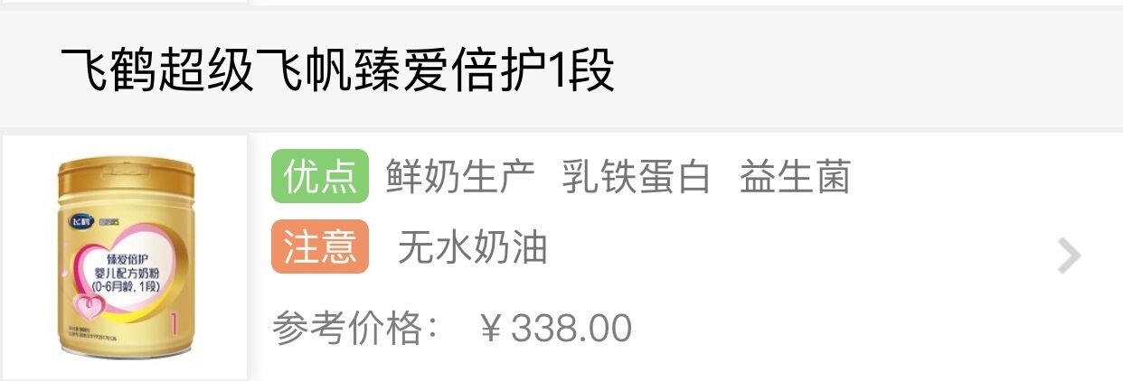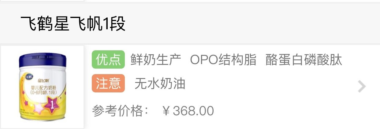 原料這塊,飛帆呵護1段含有無水奶油,牛乳脂肪的直徑比較大,對于小月齡寶寶來說可能會比較難消化吸收。