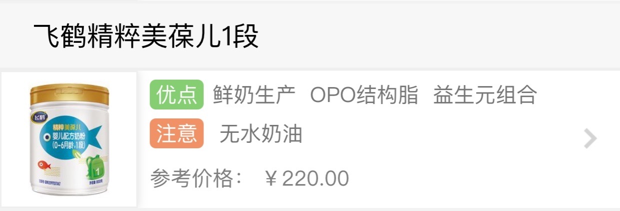 飛鶴于1962年成立,是中國最早開始生產嬰幼兒奶粉的乳品企業之一,而且它是國內第一個擁有奶粉完整產業鏈的乳企,說明飛鶴的管理、把控能力是比較強的。飛鶴旗下有非常多款奶粉,這篇要和大家說的是主攻線下銷售的精粹系列,包括精粹益加、精粹貝迪奇、精粹美葆兒、精粹貝艾兒,4款奶粉中,除了貝迪之外,其他3款奶粉的定價普遍比較親民,以下表格記錄的是它們1段在完達山飛鶴官方天貓旗艦店的價格,大家可以看一看。