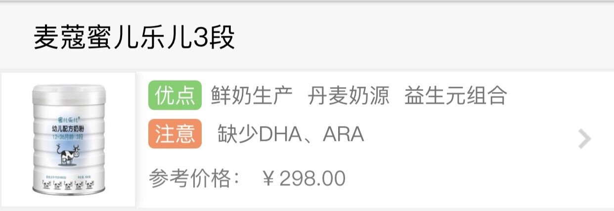營養(yǎng)這塊,在6項常規(guī)強化配方中,蜜兒樂兒3段只添加4個,缺少了有助促進寶寶思維、記憶力提高的ARA,和對大腦、視網(wǎng)膜發(fā)育有幫助的DHA,對于這種情況,各位要注意調(diào)整寶寶的輔食結(jié)構(gòu),給寶寶增加些富含DHA、ARA的輔食,例如菠菜、海魚,海藻,堅果、雞蛋,豆類等等,也可以考慮給寶寶添加DHA補充劑。