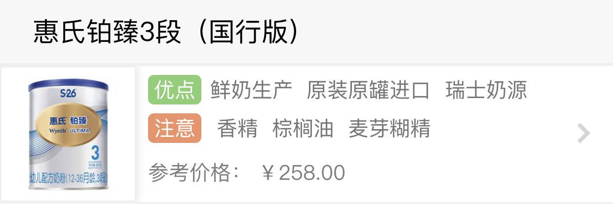原料方面,鉑臻3段含有若干個需要大家注意的成分,分別是棕櫚油、麥芽糊精、香精,棕櫚油有兩個壞處,一是會影響寶寶對鈣和脂肪酸的吸收,二是會使大便變硬而更難排出,增加了便秘的幾率。麥芽糊精的添加一般是為了取替部分乳糖的添加量,達到降低成本的目的,不過麥芽糊精的營養價值比不上乳糖。香精則是會加重奶粉的口味,可以挑起寶寶的食欲,但寶寶一旦習慣了口味這么重的奶粉,之后轉口味比較清淡的奶粉或者是食物可能會難接受些。