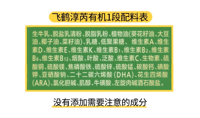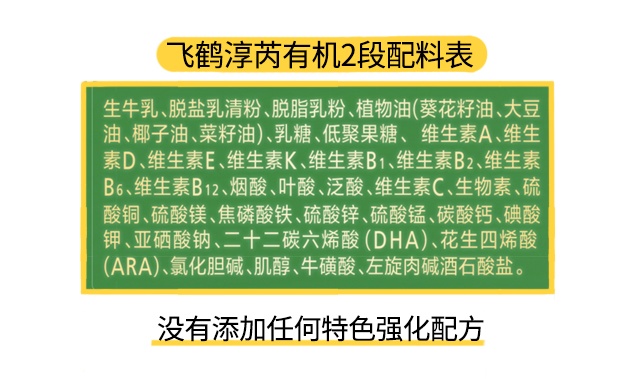 至于特色強化配方,淳芮有機各段數都沒有添加任何特色強化配方,這種情況在市面上很多有機奶粉都會出現,這與有機認證相關規定有關,奶粉中至少保證有95%原料來自有機才能通過有機認證,這就意味著人工合成的營養素就不能過多的添加。