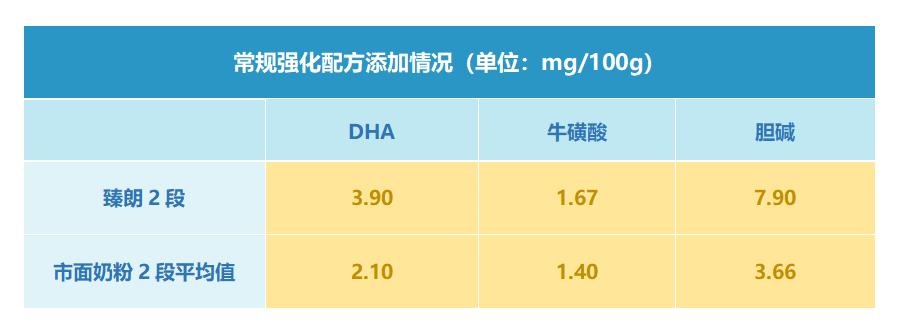 添加量方面,以下表格記錄臻朗2段與市面上2段奶粉的平均添加量,大家可以對(duì)比看看。
