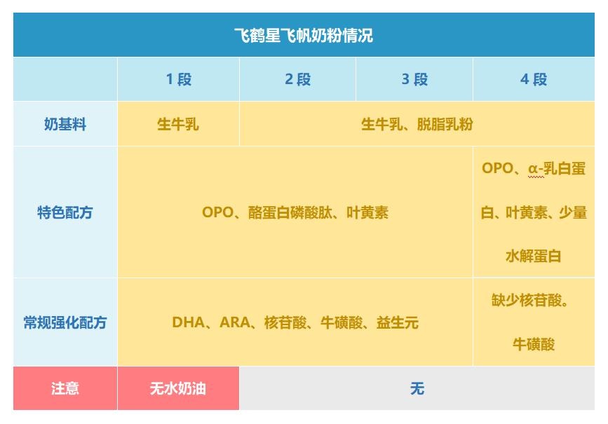 我把星飛帆奶粉配料中的特色成分和注意成分整理成以下表格,大家可以看看。