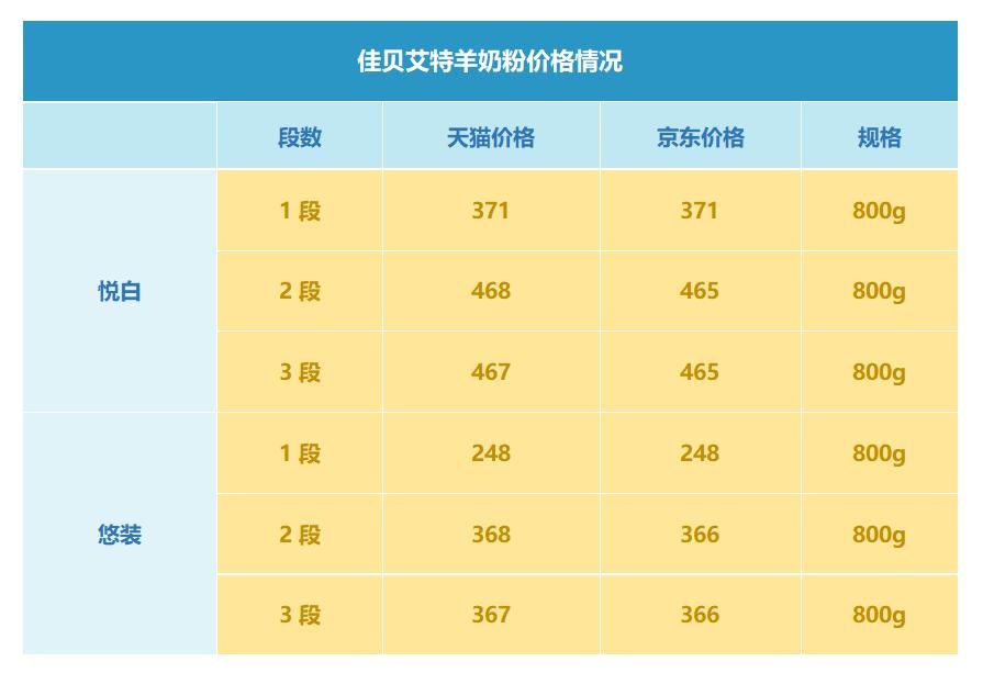 佳貝艾特是海普諾凱乳業(yè)集團旗下品牌,它比較早就推出了嬰幼兒羊奶粉,目前在國內(nèi)售賣的羊奶粉主要是悅白和悠裝兩個系列。佳貝艾特羊奶粉價格比較高,詳情各位可以看看以下我整理的表格。