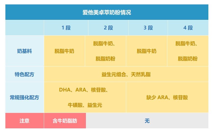 我把愛他美卓萃配方中的特色成分和注意成分整理成以下表格,大家可以看看。