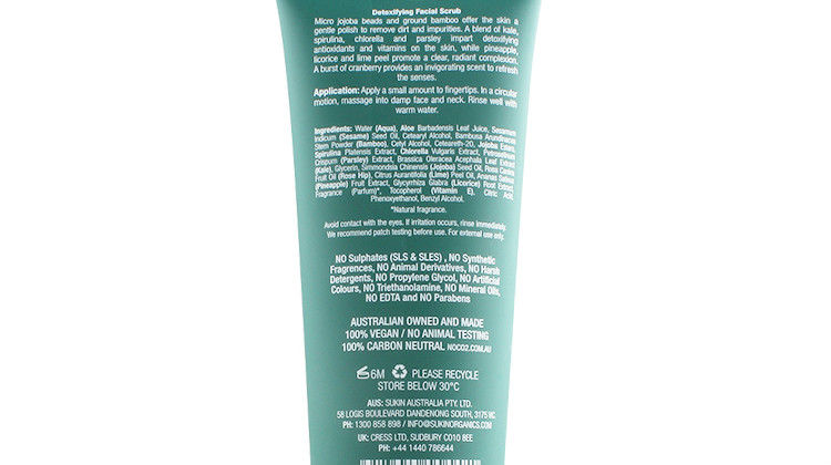 - 外文名稱 :Sukin Super Greens Detoxifying Facial Scrub 125ml