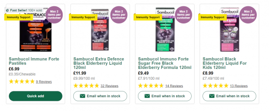 Immunace屬于英國著名的維他命品牌Vitabiotics旗下,是專注提升免疫力的保健品系列。作為日常營養的補充,它家熱賣的兩款保健品含有營養專家推薦的多重營養素和維生素,其中的維生素D、維生素C、鋅、硒都是人體免疫系統正常運作不可或缺的成分哦!這款保健品目前非?;鸨恢笔菙嘭浀臓顟B,需要的寶寶可以注冊一個郵箱通知,收到補貨信息就別猶豫,趕緊下單!