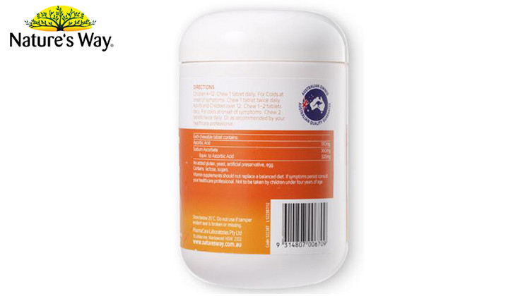 - 外文名稱 :Nature's Way Vitamin C 500mg Sugarless Chewable Tab X 300