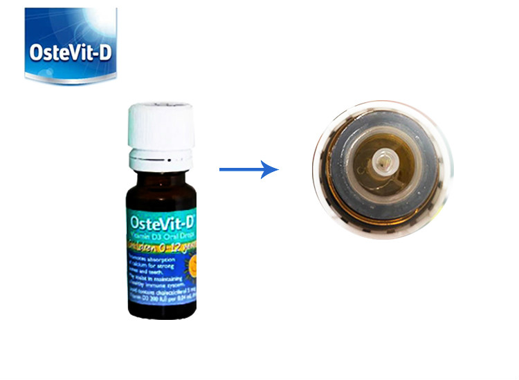 將瓶子傾斜45度,就會(huì)自動(dòng)滴出一滴,可直接滴入嬰幼兒口中,也可加至1勺牛奶或果汁中服用。